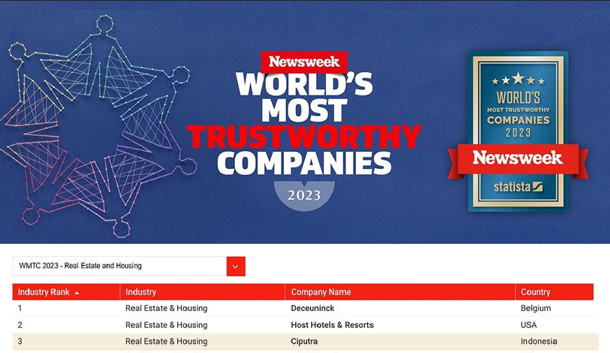 Ciputra Group Raih Peringkat 3 Sebagai Perusahaan Properti Terpercaya Dunia